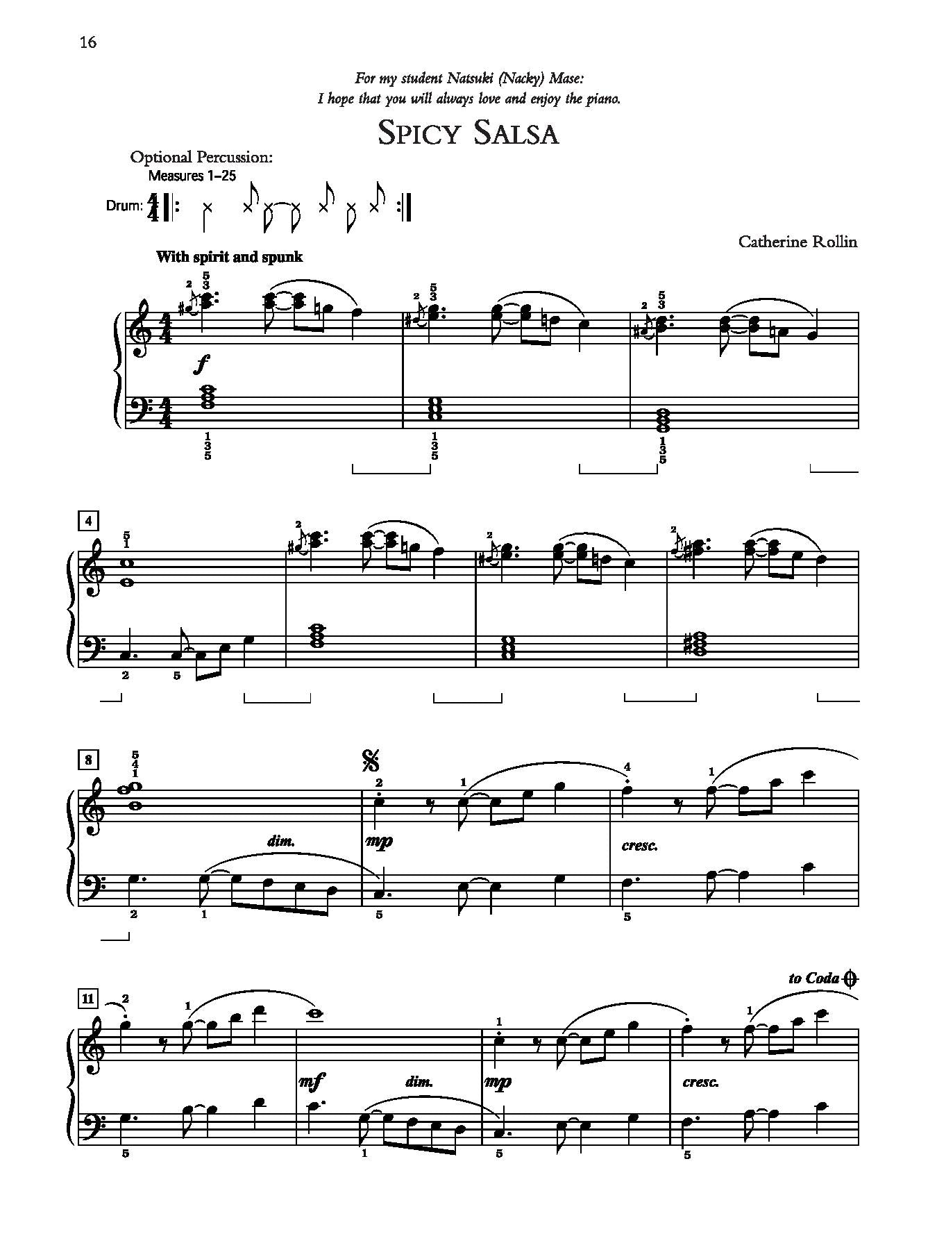 Teachers and students love Catherine Rollin's duet series Dances for Two, and encouraged her to write all-new solo collections of pieces based on dance rhythms. Book 1 titles: Conga, Conga, Conga * Island Rumba * The Jester's Gigue * Make Mine Cha-Cha-Cha! * Mazurka for Chopin * Mediterranean Dance * Rock and Roll Slow Dance * Spicy Salsa * Tantalizing Tango * Tap Time Encore.