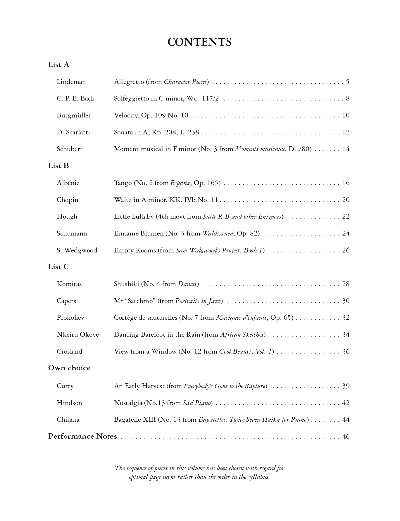 The anthology supports students preparing for ABRSM Practical Exams or Performance Exams. Performance Notes are included for each piece, written by Norman Beedie (Lecturer in Classical Improvisation, Piano and Conducting at the Royal Conservatoire of Scotland) and Ateş Orga (Formerly Lecturer in Music at the University of Surrey and Examiner at the Associated Board of the Royal Schools of Music) which give advice on technique and interpretation for each piece, and guidance on preparing an effective programme.