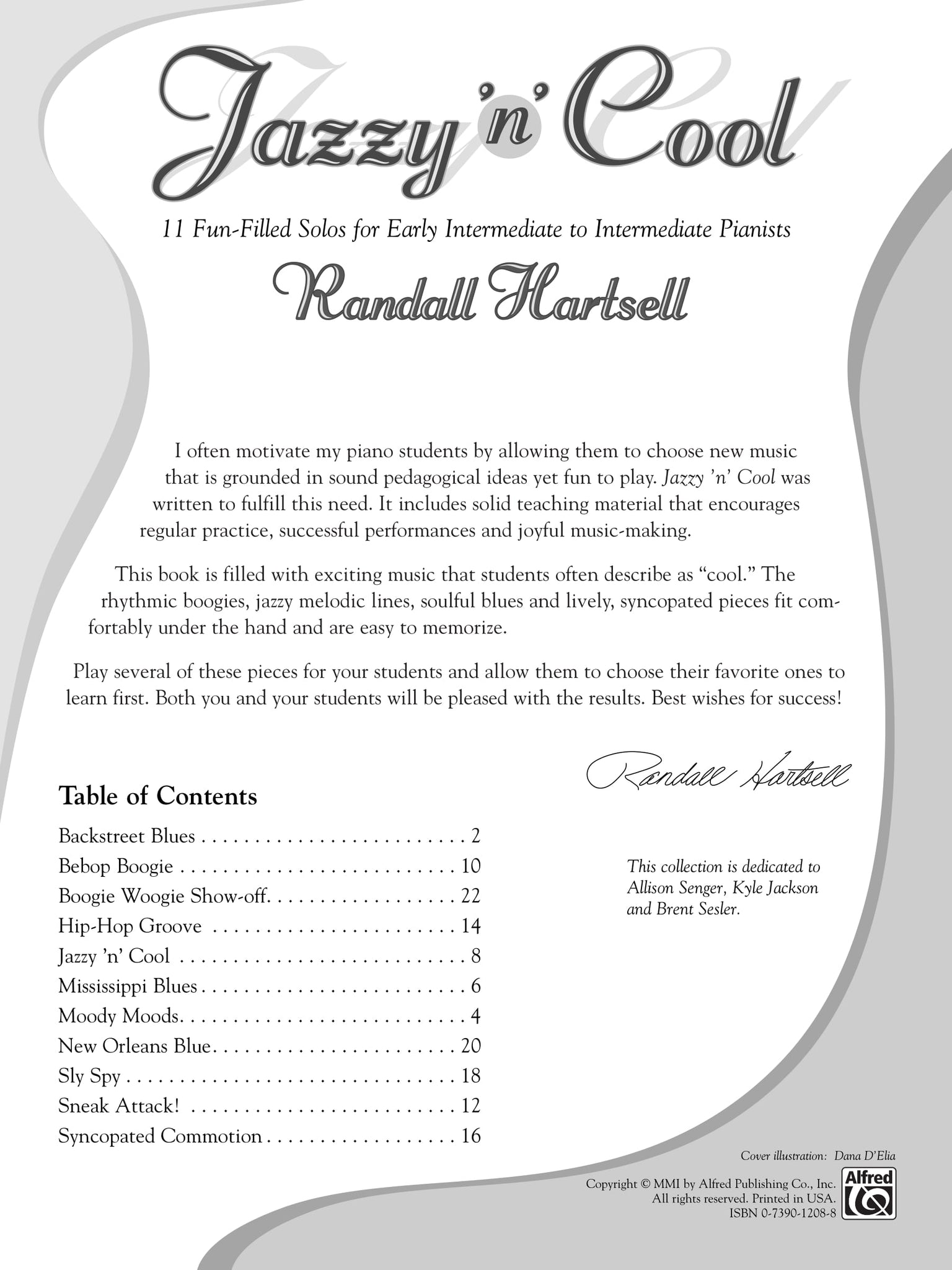 Randall's collection is filled with exciting music that students often describe as "cool." The rhythmic boogies, jazzy melodic lines, soulful blues and lively, syncopated pieces fit comfortably under the hand and are easy to memorize. They are grounded in sound pedagogical ideas and fun to play.